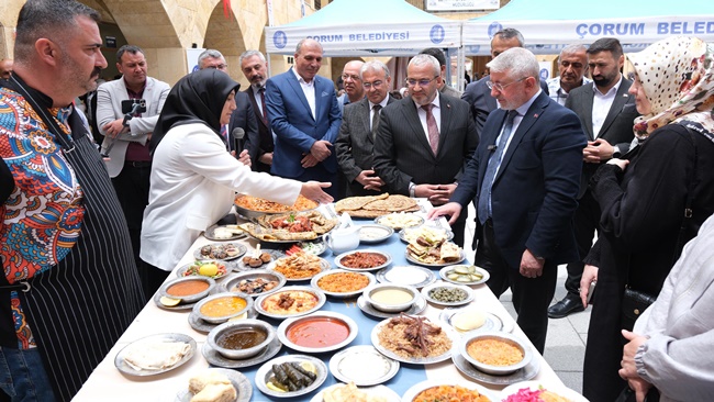 Çorum Belediyesi’nin ev sahipliğinde, İl Milli Eğitim Müdürlüğü işbirliğiyle “Türk Mutfağı Haftası” etkinliği düzenlendi. Bu yıl dördüncüsü gerçekleştirilen Türk Mutfağı Haftası kapsamında Çorum’un coğrafi işaretli geleneksel lezzetleri tanıtıldı. Bedesten'de gerçekleştirilen programa; Çorum Belediye Başkanı Dr. Halil İbrahim Aşgın, eşi Feyza Aşgın, İl Milli Eğitim Müdürü Cemil Çağlar, kadın kültür merkezleri kursiyerleri ve çok sayıda vatandaş katıldı. Bu yıl ki teması “Türk Mutfağının Klasik Yemekleri” olarak belirlenen etkinlikte, Çorum belediyesi kadın kültür merkezleri kursiyerleri tarafından hazırlanan stantlarda Çorum’un kadim kültürünün sofraya yansıyan örnekleri sunuldu. Etkinliğin açılışında konuşan İl Milli Eğitim Müdürü Cemil Çağlar, organizasyona katkı sunanlara teşekkür ederek, “El emeği ve göz nuru eserleriniz çok kıymetli. Başta Belediye Başkanımız Dr. Halil İbrahim Aşgın olmak üzere emeği geçen herkese teşekkür ediyorum” dedi. Belediye Başkanı Dr. Halil İbrahim Aşgın da konuşmasında etkinlikte bulunmaktan memnuniyet duyduğunu belirterek, “Çorum mutfağının tanıtımına katkı sunan tüm kursiyerlerimize ve bu güzel organizasyonda emeği geçen herkese teşekkür ediyorum” ifadelerini kullandı. Etkinlik, geleneksel lezzetlerin ikram edilmesiyle sona erdi.
