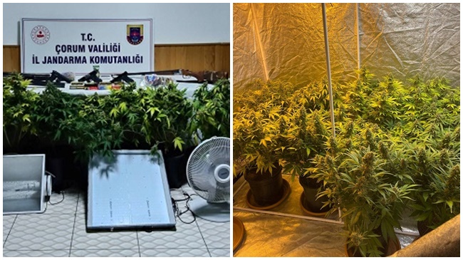 Çorum İl Jandarma Komutanlığı tarafından uyuşturucuyla mücadele kapsamında yürütülen çalışmalar neticesinde, skunk uyuşturucu maddesi üreten şahıslara yönelik başarılı bir operasyon gerçekleştirildi.